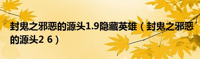 大家好,小金来为大家解答以上的问题。封鬼之邪恶的源头1.9隐藏英雄,封鬼之邪恶的源头2 6这个很多人还不知道,现在让我们一起来看看吧!